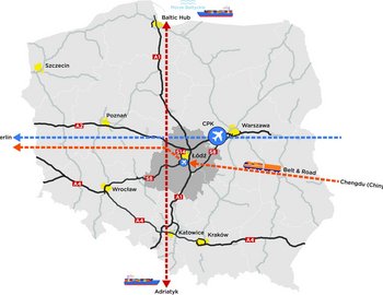 Łódź is a key node in the growing Golden Y macro-region, connecting Warsaw, Łódź, Poznań, and Wrocław.